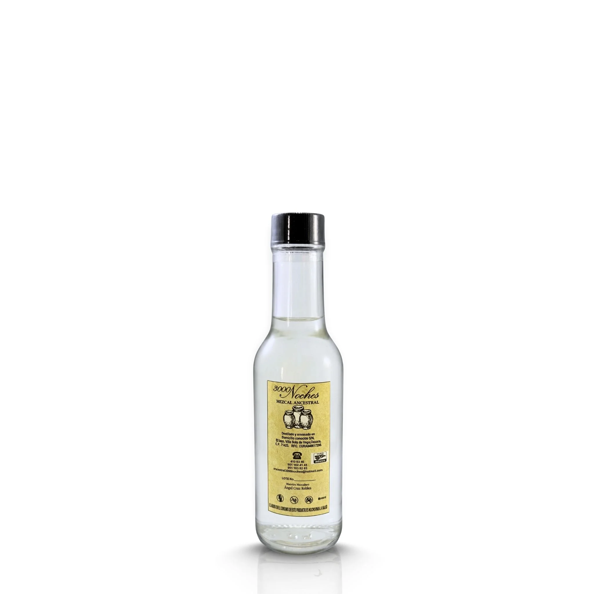 Mezcal Ancestral Espadín Blanco del Maestro Ángel Cruz Robles. Destilado en olla de barro. 150 ml | 48° | El Lazo, Sola de Vega.