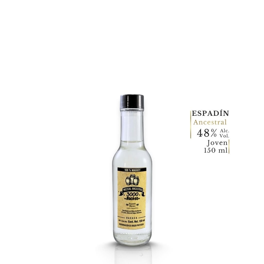 Descubre el Mezcal Ancestral 3000 Noches Espadín Blanco, elaborado con 100% Agave Angustifolia en El Lazo, Villa Sola de Vega, Oaxaca. Lo destila el Maestro Mezcalero Ángel Cruz Robles aplicando la misma técnica Ancestral que distingue a toda la línea 3000 Noches. En presentación de 150 ml, este Espadín muestra lo que sucede cuando el agave más conocido de Oaxaca se destila en olla de barro: una transformación profunda y sorprendente.