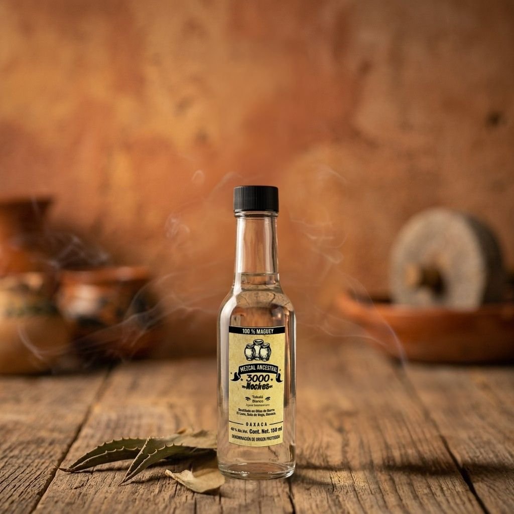 Descubre el Mezcal Ancestral 3000 Noches Tobalá Blanco, elaborado con 100% Agave Seemanniana en El Lazo, Villa Sola de Vega, Oaxaca. Lo destila el Maestro Mezcalero Ángel Cruz Robles, artesano de una de las regiones mezcaleras más auténticas de la Sierra Sur. En presentación de 150 ml, esta botella lleva todo el carácter del Tobalá Ancestral en formato ideal para descubrirlo, coleccionarlo o regalarlo a quien entiende de mezcal.