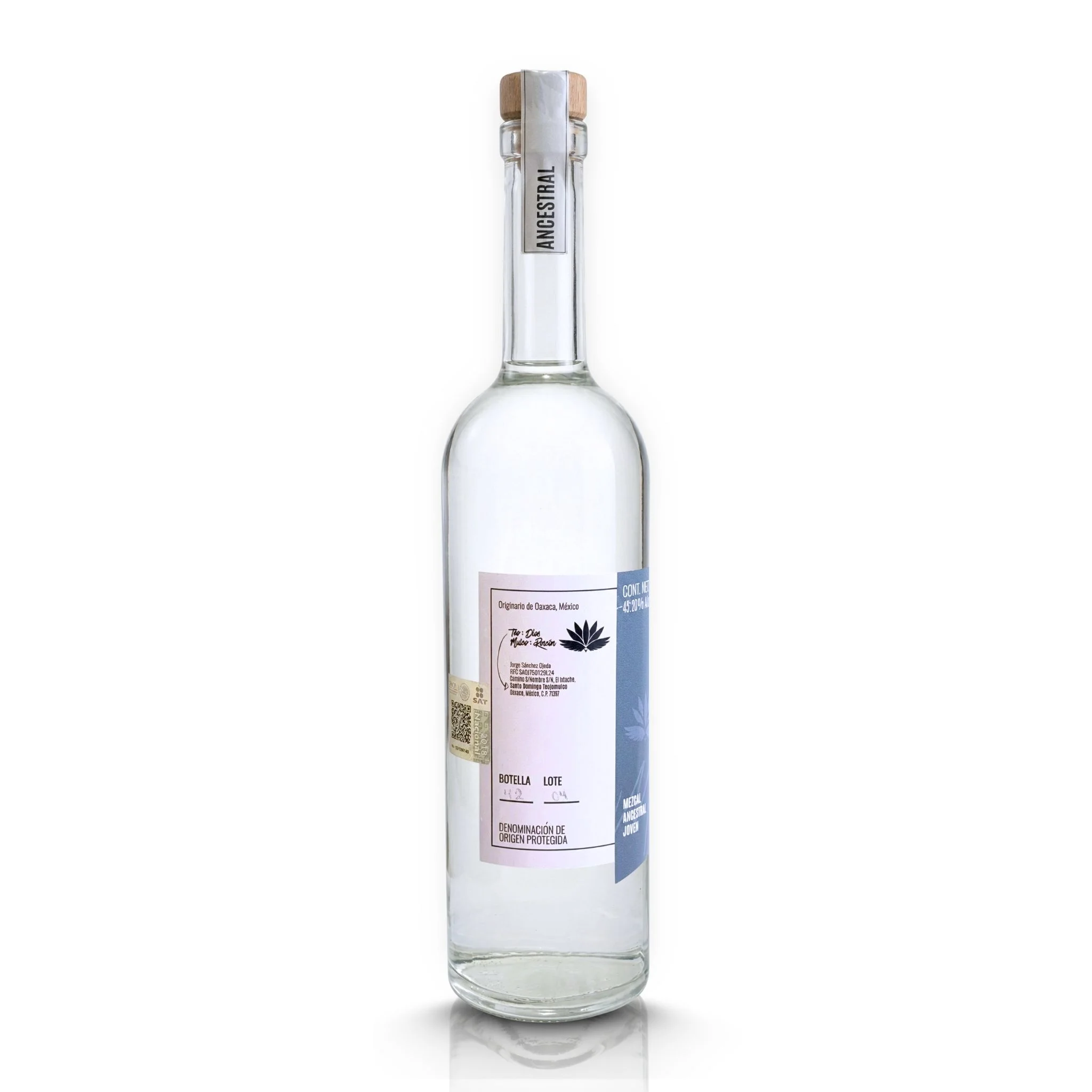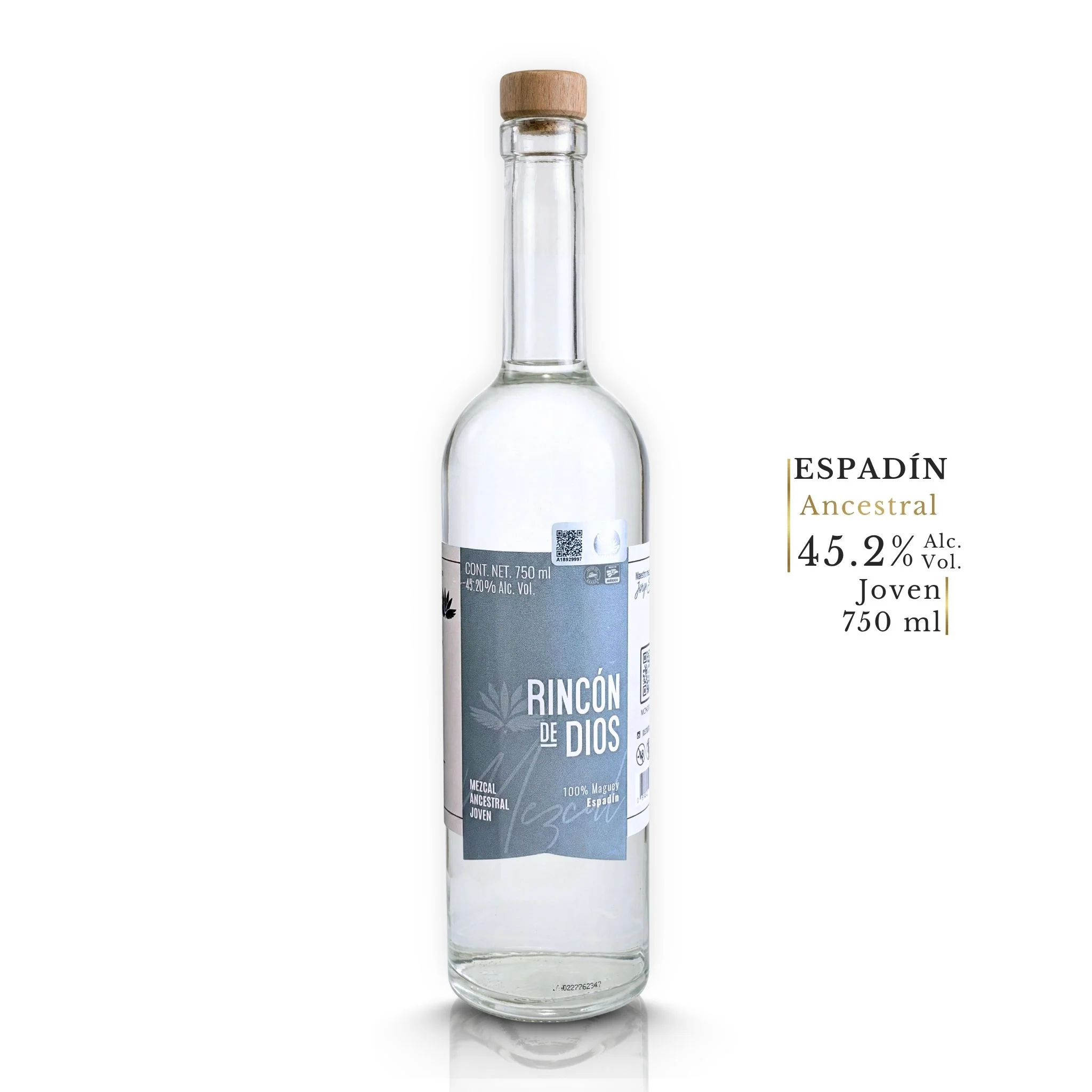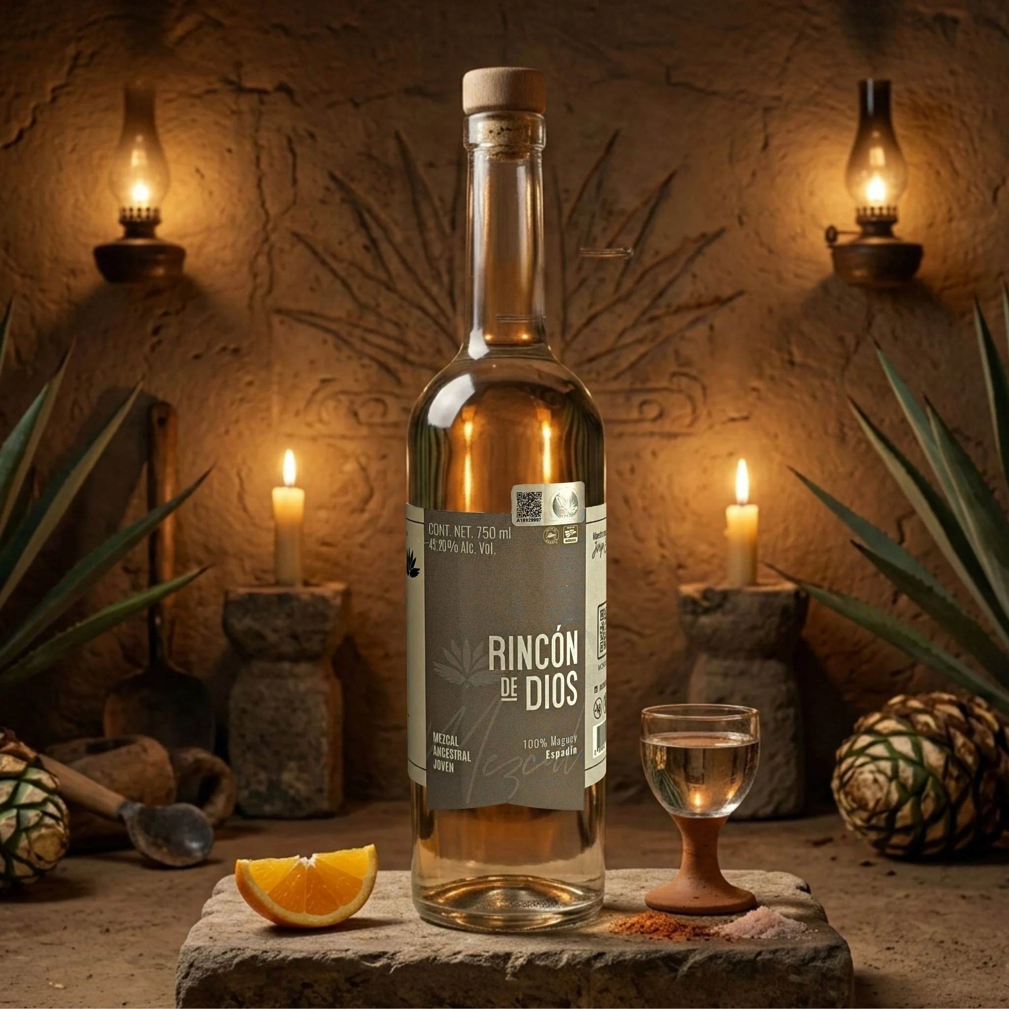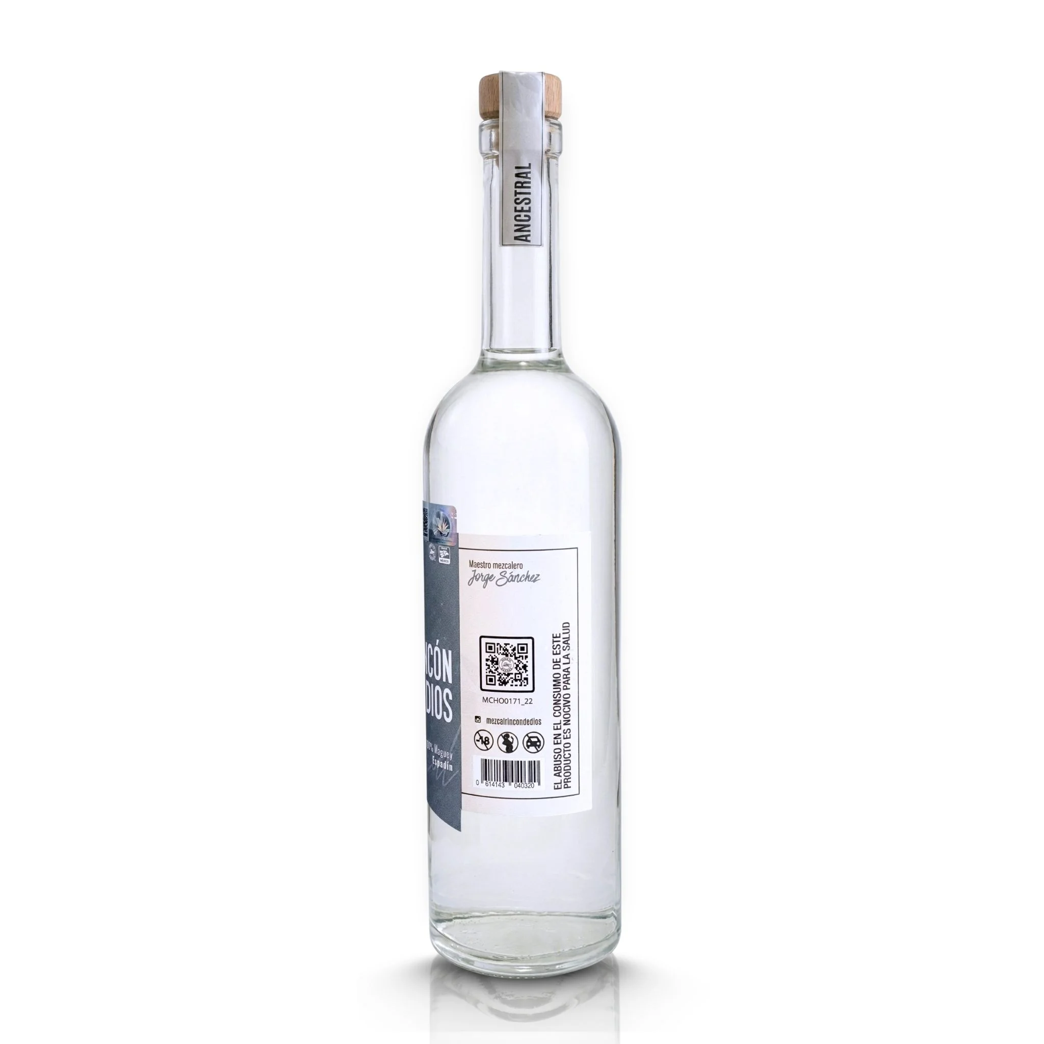 La mayoría del Espadín en el mercado es Artesanal o Industrial. El de Rincón de Dios es Ancestral. Esa diferencia de categoría lo cambia todo: la destilación se realiza en olla de barro sobre fogata abierta, el método más antiguo del mezcal mexicano. El resultado es un Espadín con una dimensión mineral, arcillosa y profunda que sorprende incluso al catador más experimentado. Con 45.20% Alc. Vol. y lote MCHO0171_22, cada botella tiene identidad propia.