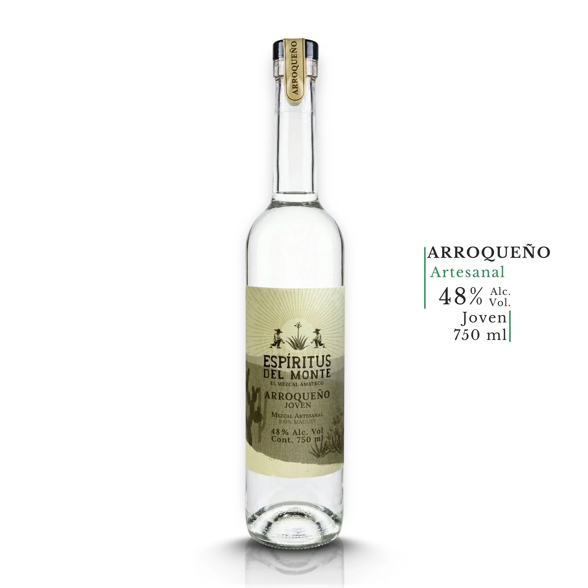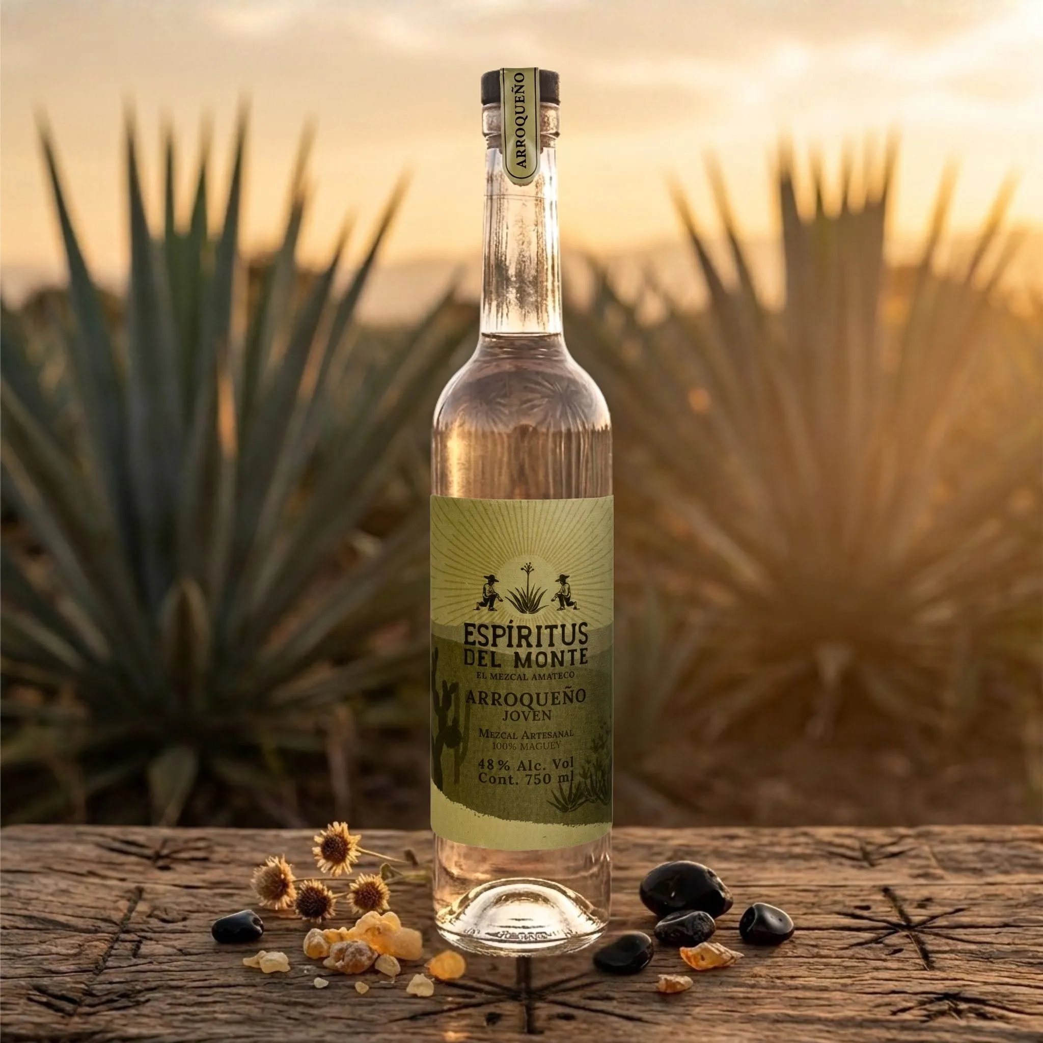 El arroqueño: un agave que puede tardar entre 15 y 25 años en madurar. Una vez en copa, deja una huella sensorial imposible de ignorar. Con 48% Alc. Vol., Espíritus del Monte conserva toda la potencia y densidad aromática que esta especie silvestre acumula durante décadas. Es el mezcal del conocedor que entiende que la escasez tiene valor.