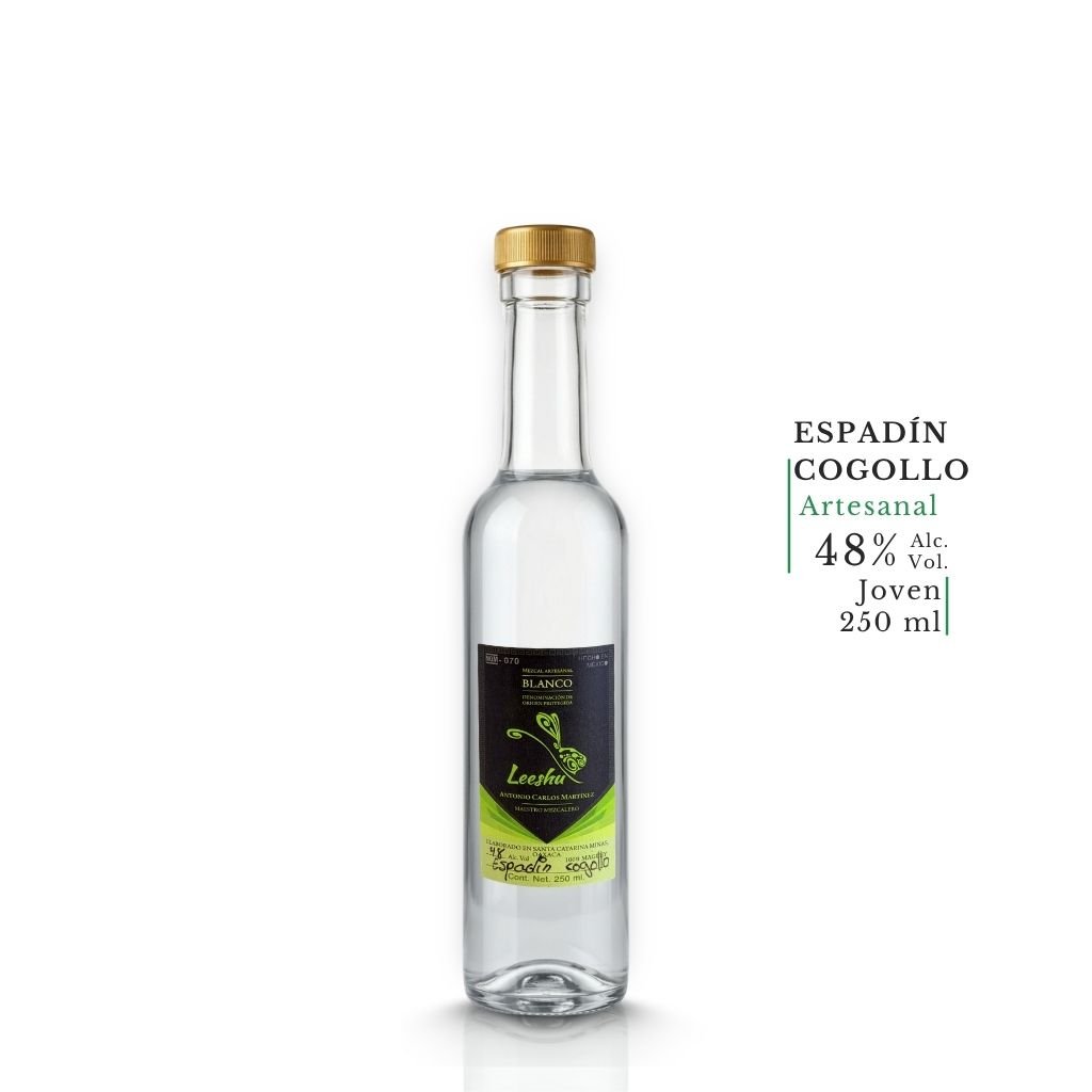 Cuando el Espadín empieza a desarrollar su quiote, el maestro puede elegir: dejarlo florecer o cosechar el cogollo. En el Espadín Cogollo, se cosecha en ese momento preciso, capturando la mayor concentración de azúcares del agave. Combinado con la doble destilación en olla de barro característica del mezcal minero de Santa Catarina Minas, el resultado es un mezcal artesanal con un perfil más dulce, floral y complejo. Con 48% Alc. Vol., registro NOM-070 y DOP, Leeshu garantiza autenticidad en cada botella.