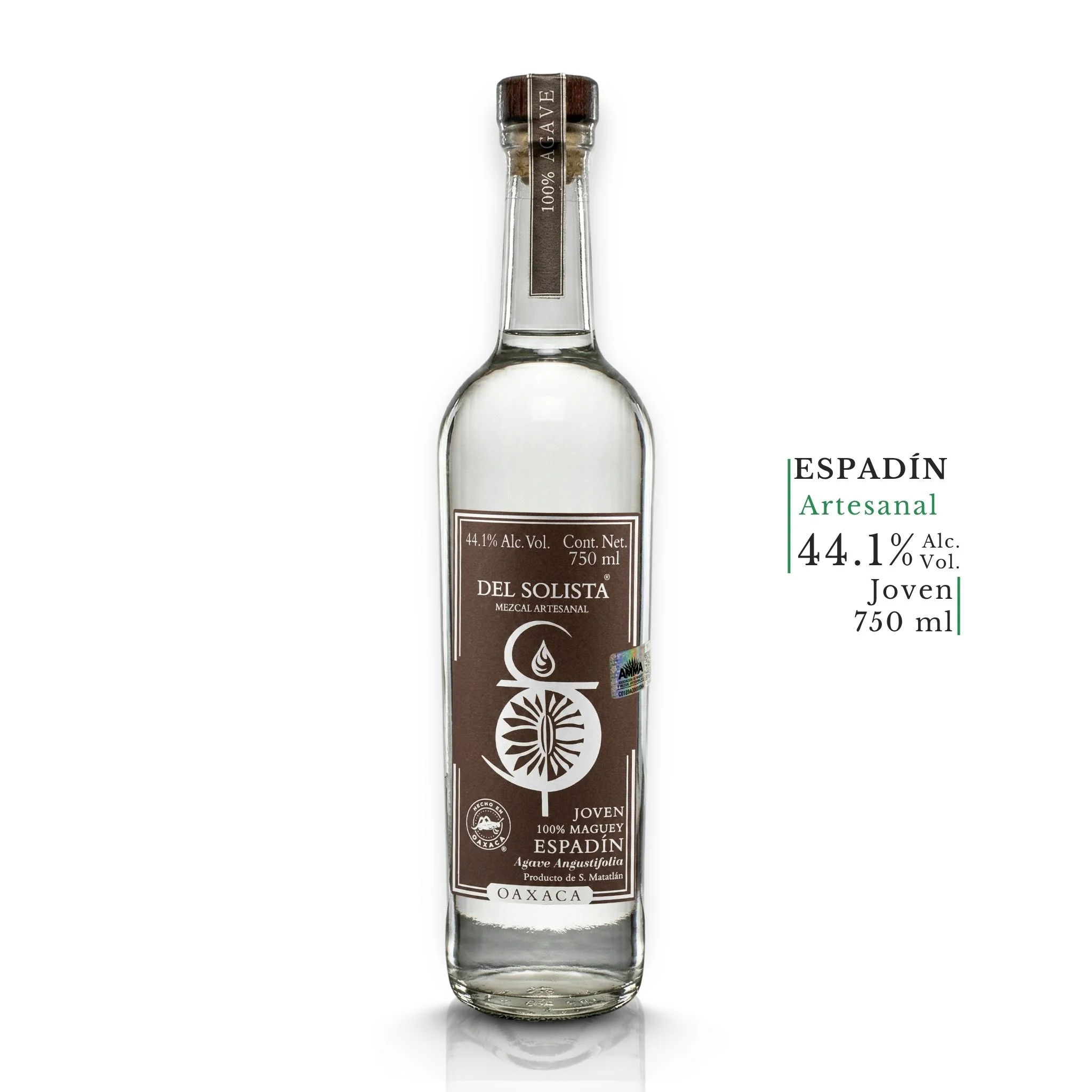 Mezcal Espadín Joven de Santiago Matatlán, Oaxaca. Certificado ANMA. 100% Agave Angustifolia. 750 ml | 44.1° | Hecho en Oaxaca.
