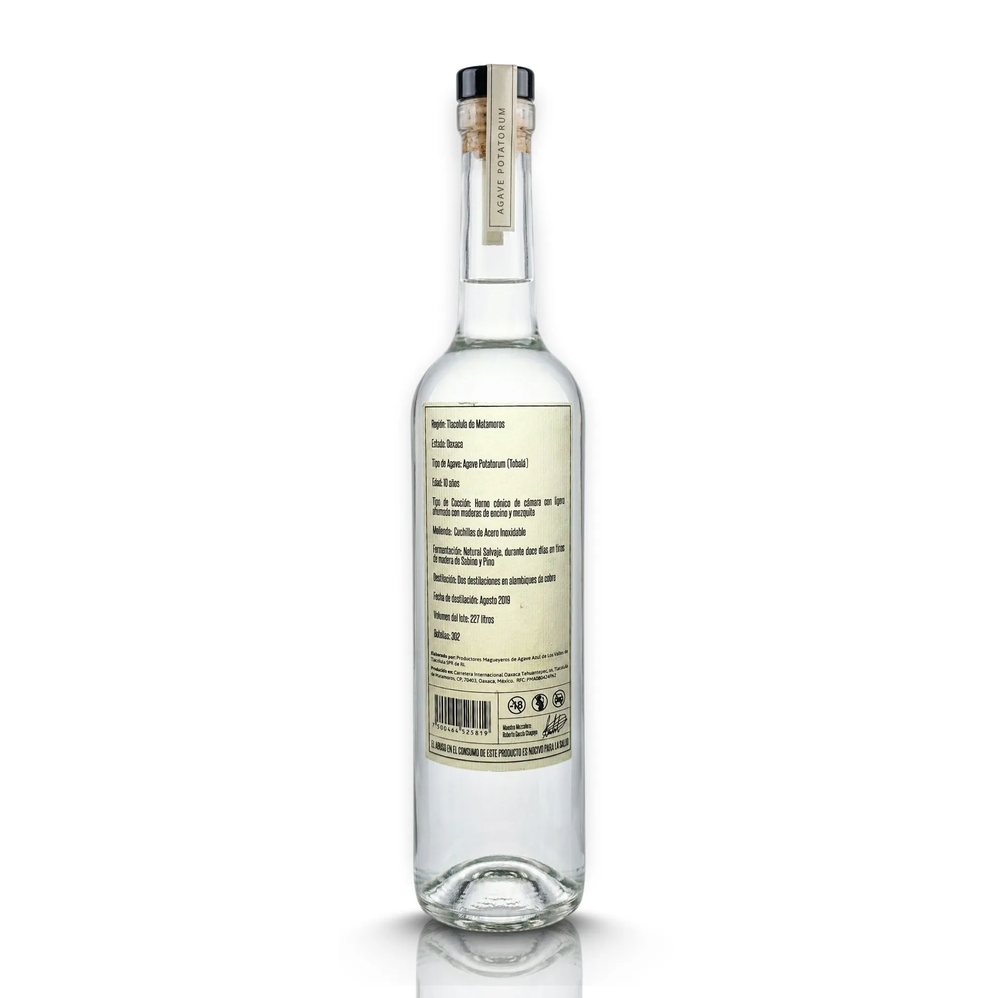 - Agave: 100% Tobalá (Agave Potatorum) de 10 años.
