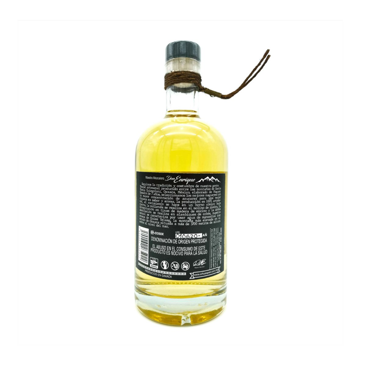 Maestro Mezcalero Don Enrique Espadín Añejo se diferencia por su exclusivo uso de agua de manantial proveniente de Quiee Yelaag, la montaña más alta de la sierra oaxaqueña, situada a más de 3,700 metros sobre el nivel del mar. Cada botella ofrece un perfil profundo y refinado, con notas maduras que reflejan su tiempo de reposo. Este mezcal único se destaca por su riqueza en sabor y aroma, convirtiéndose en una experiencia memorativa que honra la tradición mezcalera de Oaxaca.